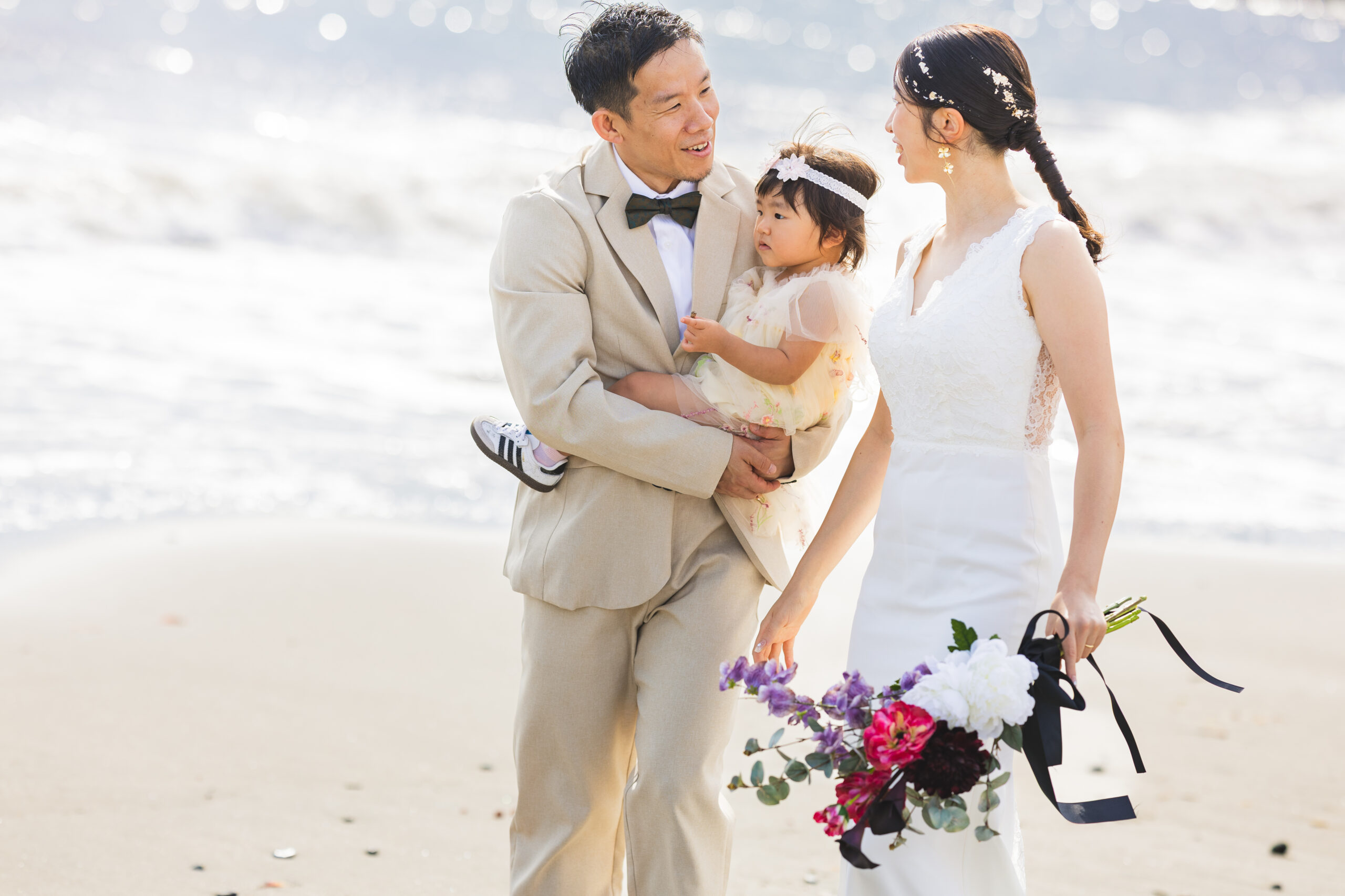 砂浜で一緒に遊んだり、手をつないで歩いたり。