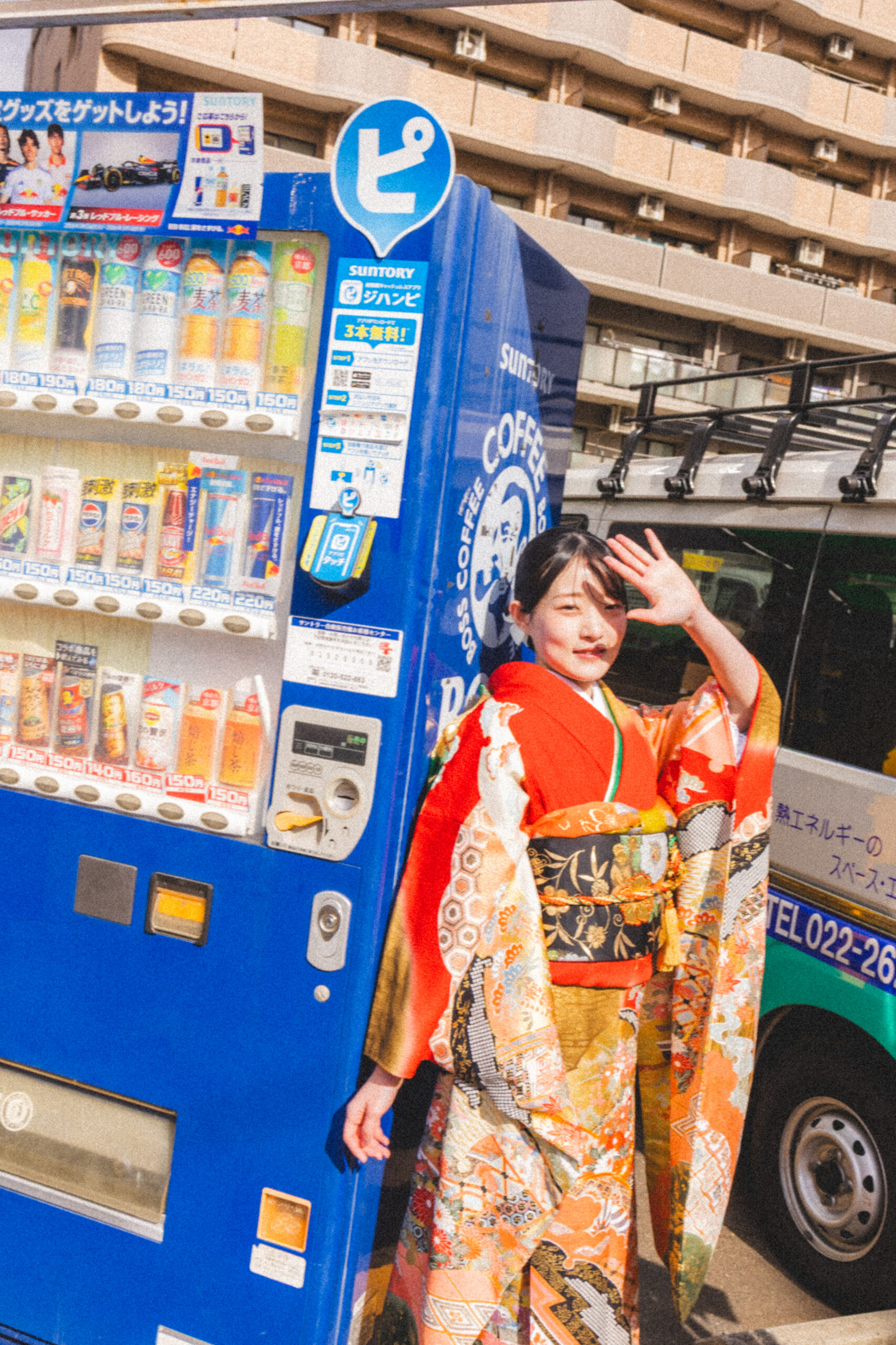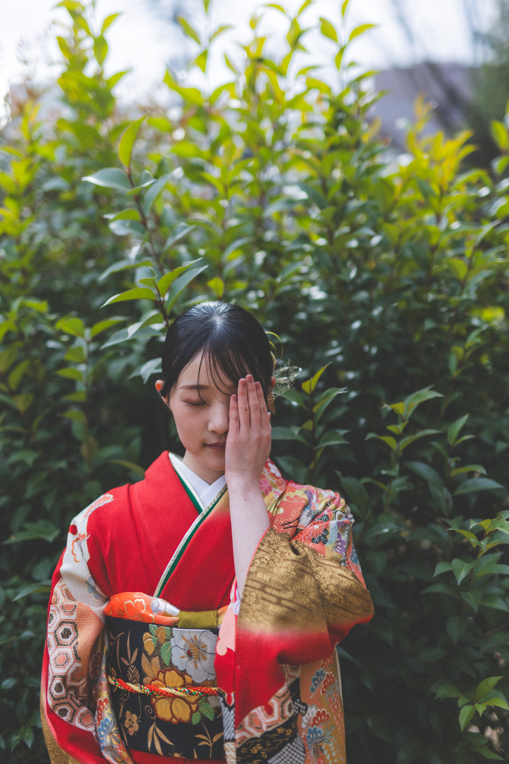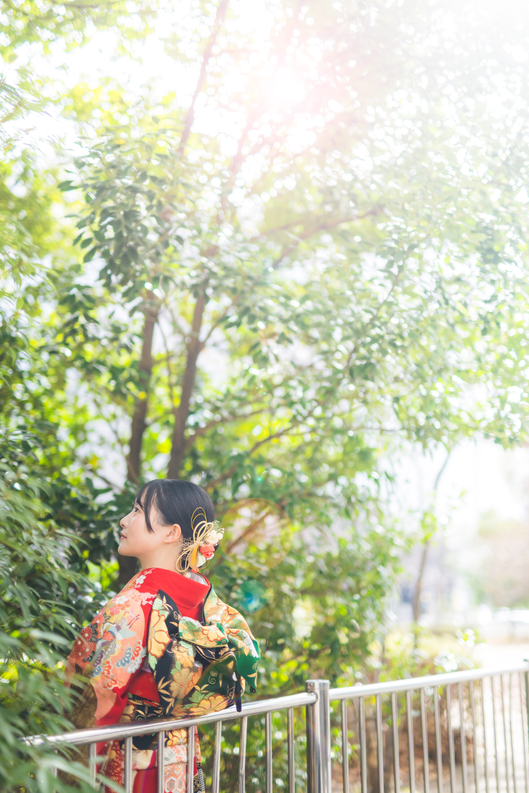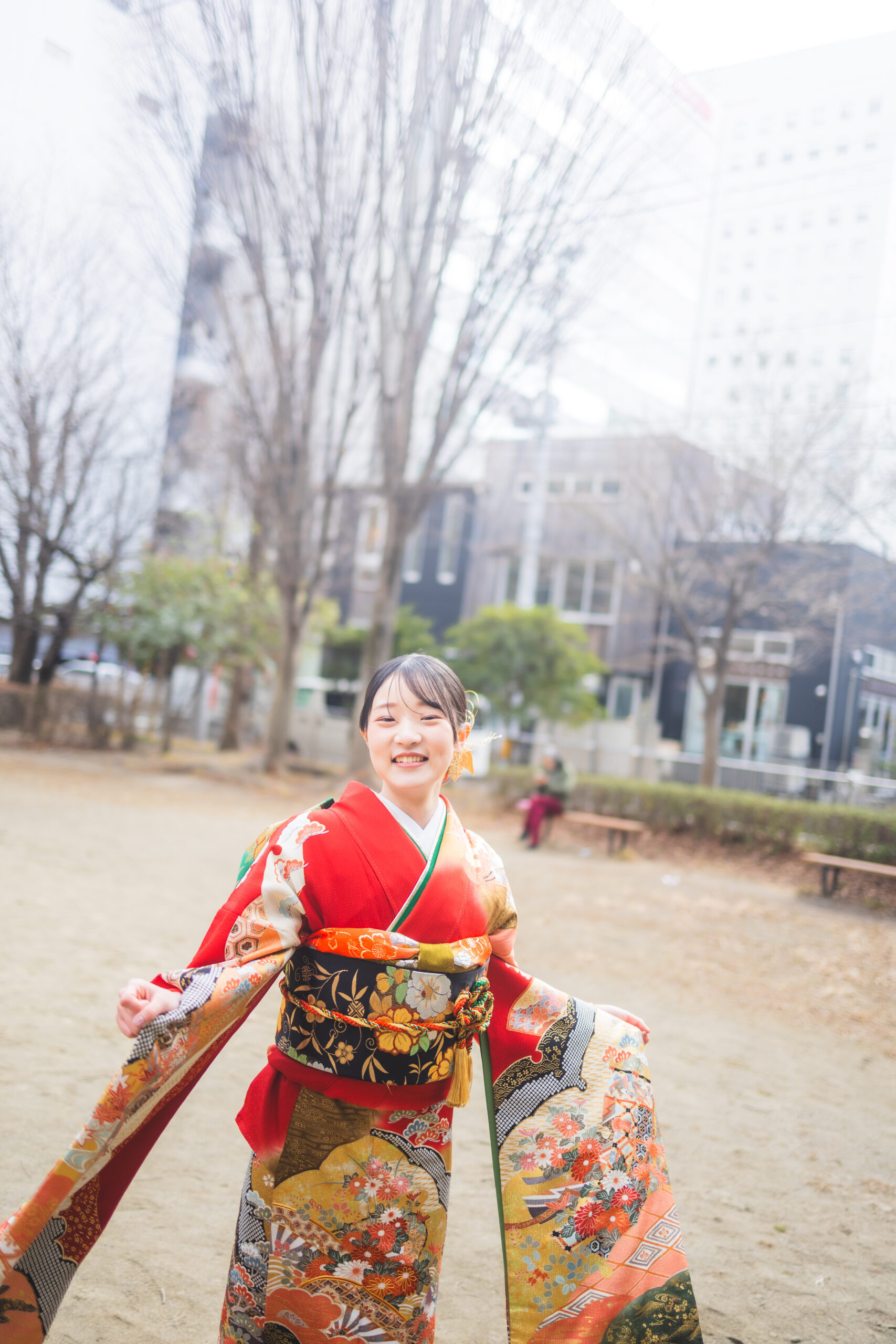 公園でのロケーション撮影で残す、振袖の後撮り。