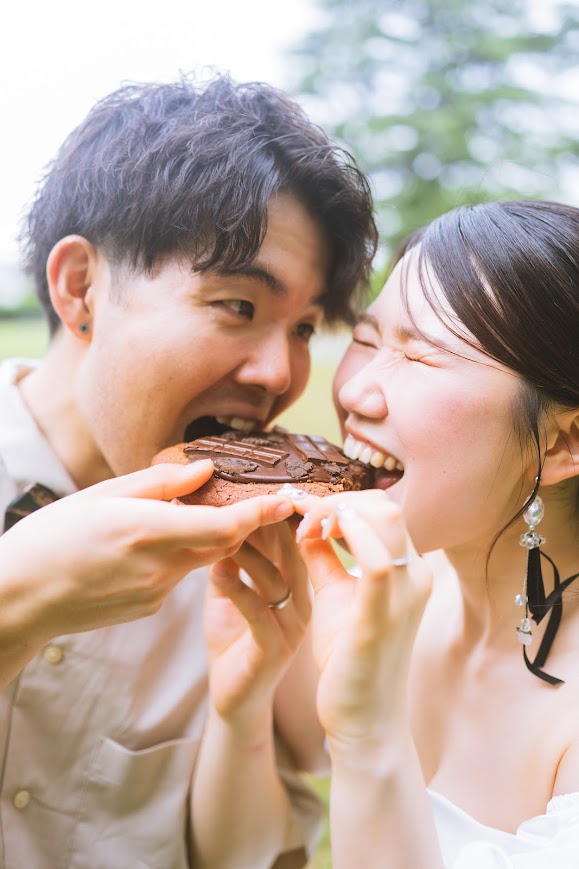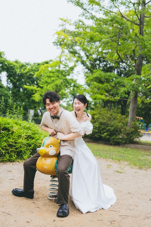 公園でのロケーション撮影は、自然体のおふたりの表情を残すのにぴったりです。